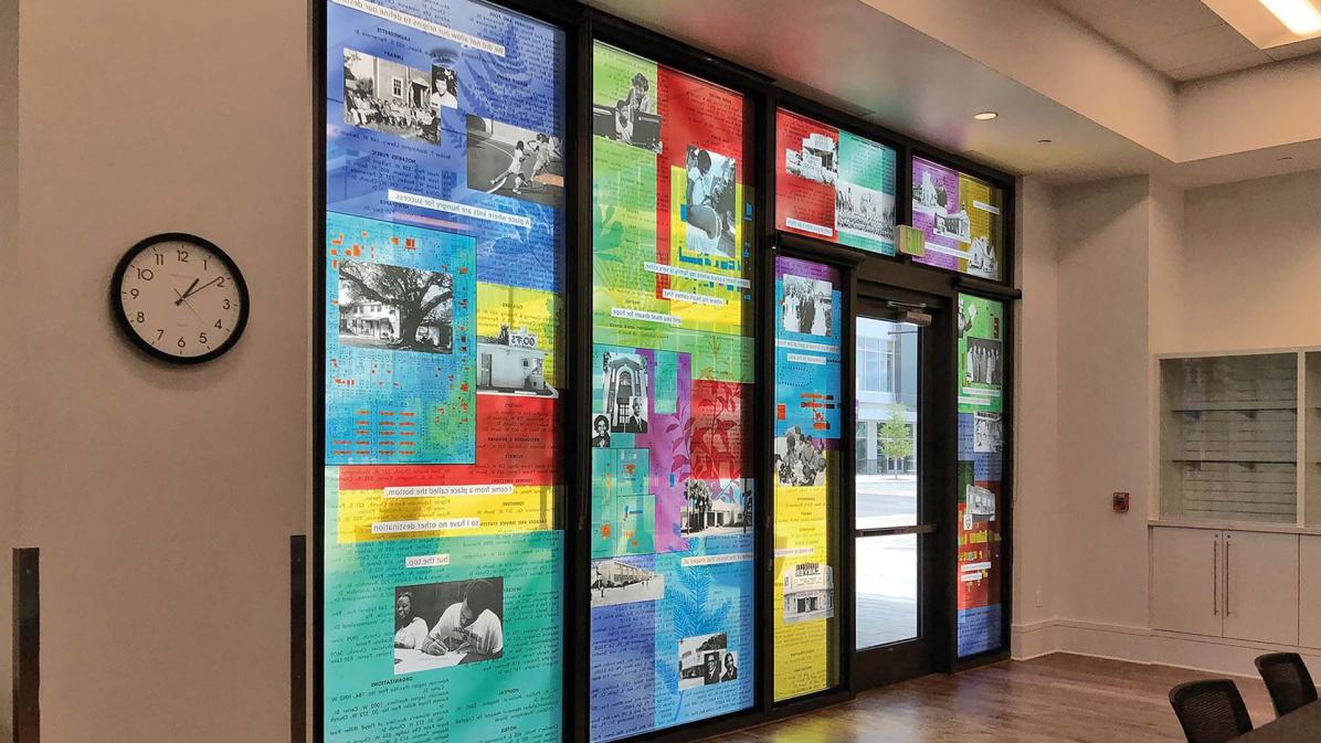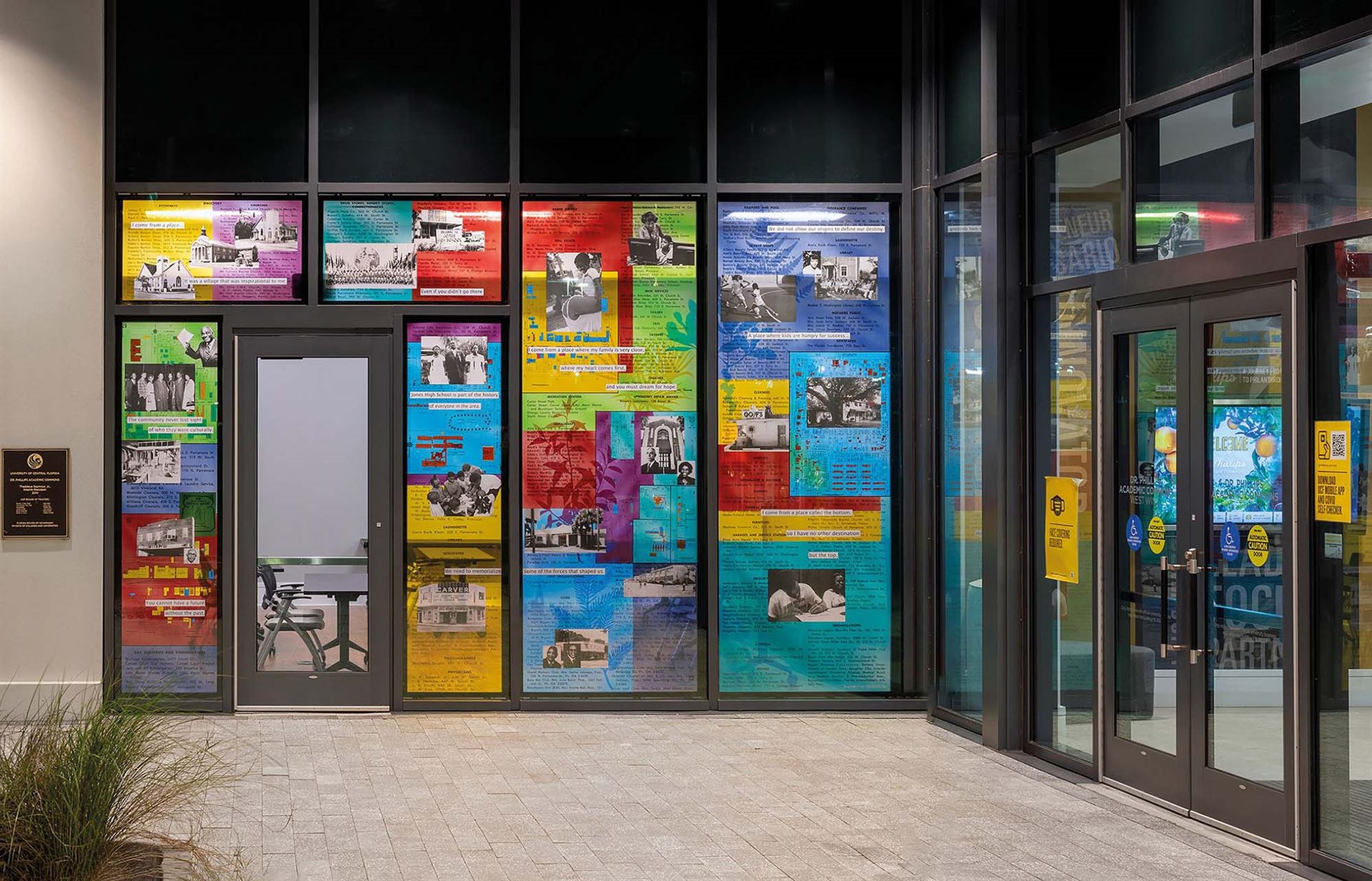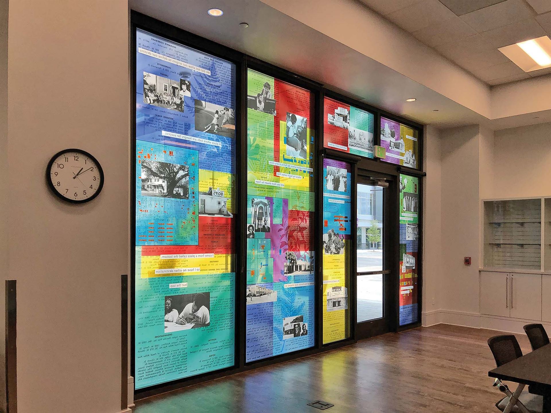 Dieses Projekt ist eine Glasfassade, die am Eingang zum Florida Blue Parramore Room auf dem neuen Campus der University of Central Florida in Orlando installiert wurde. Der Campus befindet sich in dem Gebiet, in dem früher die schwarze Gemeinde Parramore lebte. Die Gesamtgröße der Kunstverglasung beträgt 11½’h x 17’w x ½”d.