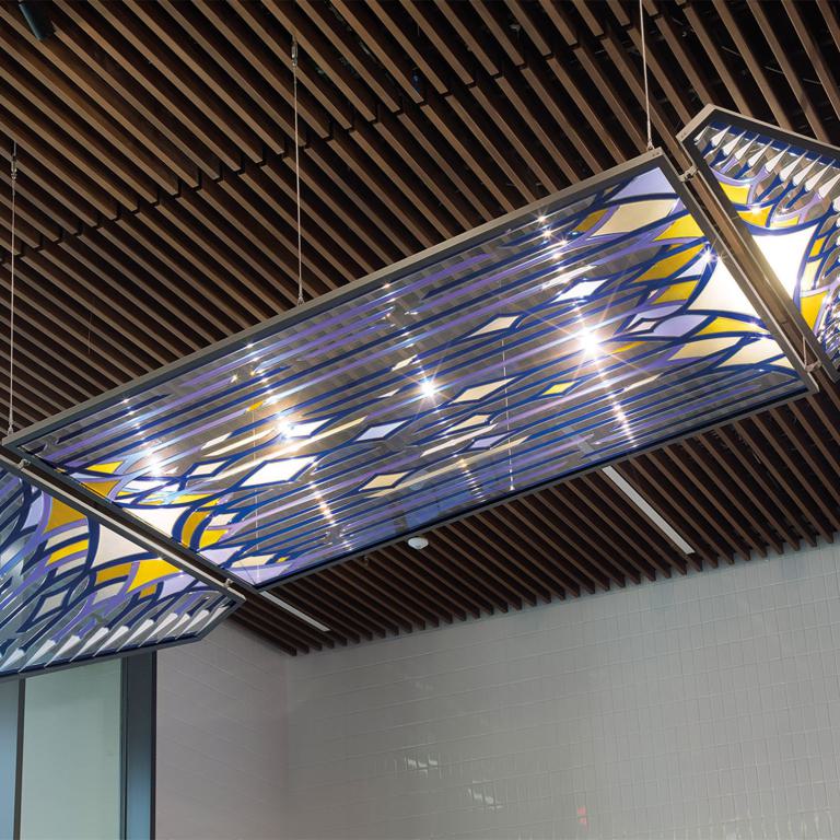 Sky Carpet is in the collection of the NYC Department of Education, Public Art for Public Schools. This permanent installation is on view in the glass lobby of the Kahlil Gibran International Academy.