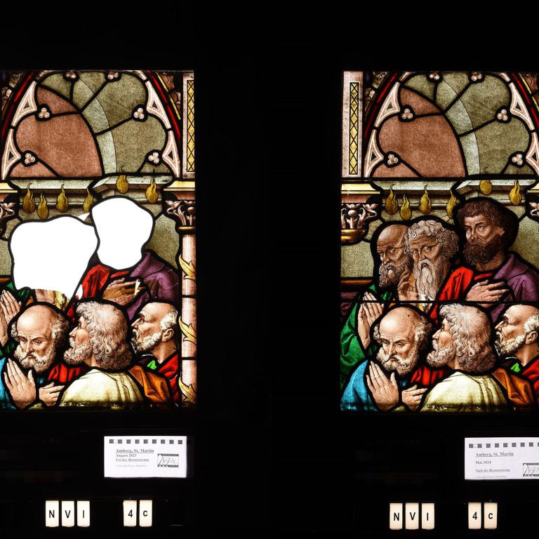 Basilika St. Martin Amberg, Fenster 19.Jahrhundert. Rekonstruktion zerstörter Köpfe aus Fenster NVI