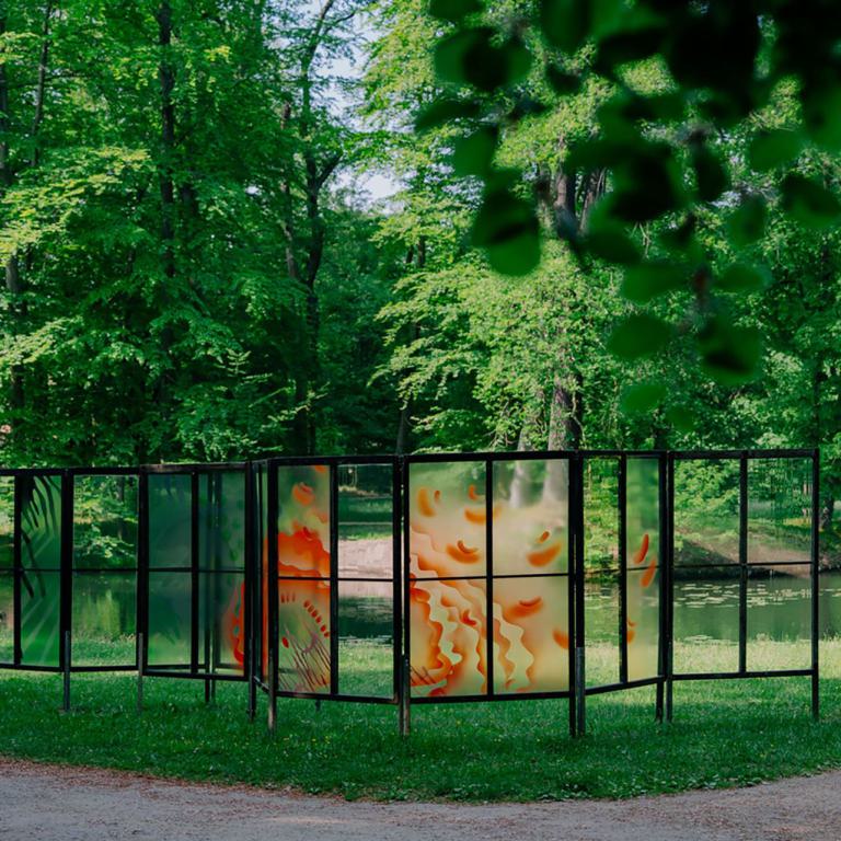 Ortspezifische Glasarbeit für die Stiftung Fürst-Pückler-Museum im Historischen Park von Schloß Branitz. Im Rahmen der Ausstellung "Between Roots and Crowns" kuratiert durch das Symbiotic Lab Berlin.