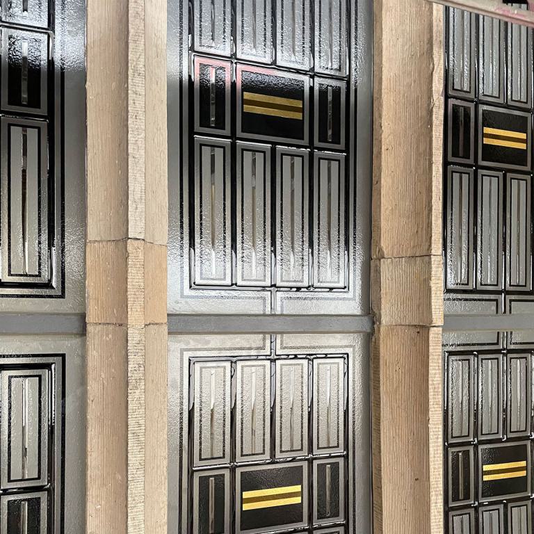 Großformatige beidseitige Reliefverglasungen als Sicherheitsglas und Isolierverglasungen gefertigt.