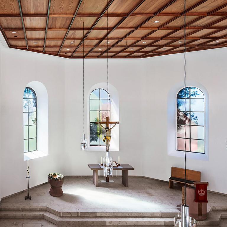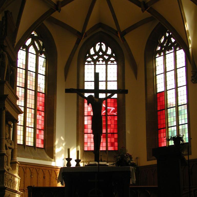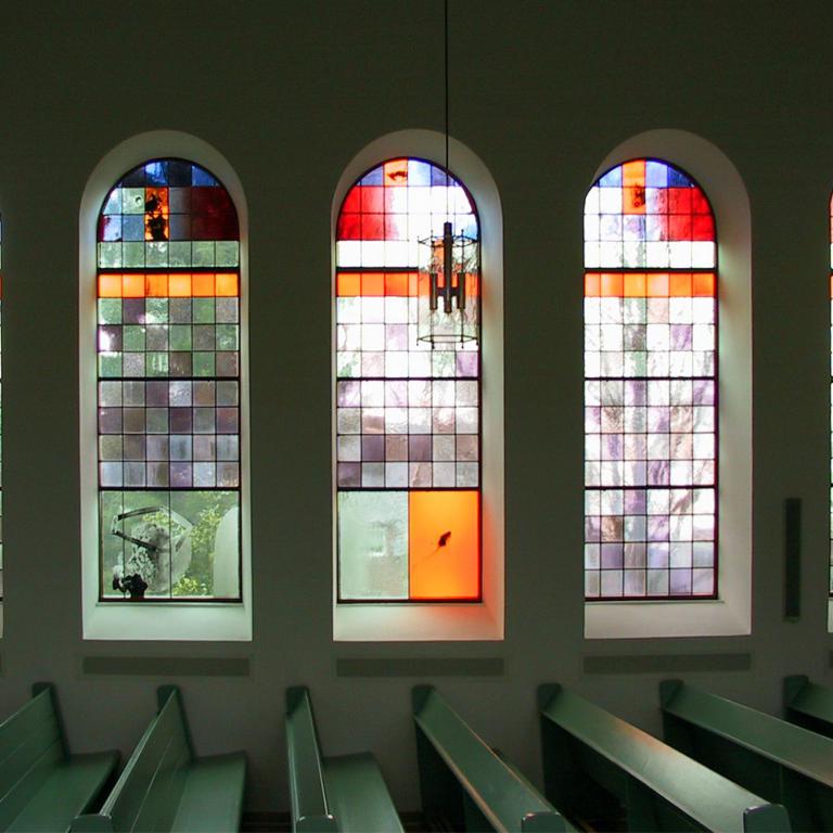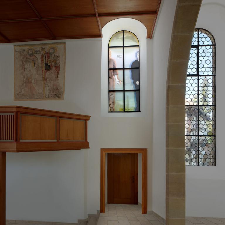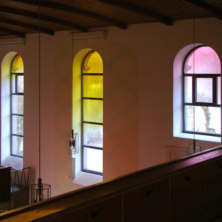 Bemerkenswert ist die Erweiterung des vorgestellten Gestaltungskonzepts im laufenden Prozess der Renovierung. Da sowohl der künstlerische Ansatz als auch dessen Umsetzung die Kirchengemeinde überzeugten, wurde zusätzlich die Gestaltung der Fensterflächen in den Seitenwänden in Auftrag gegeben...