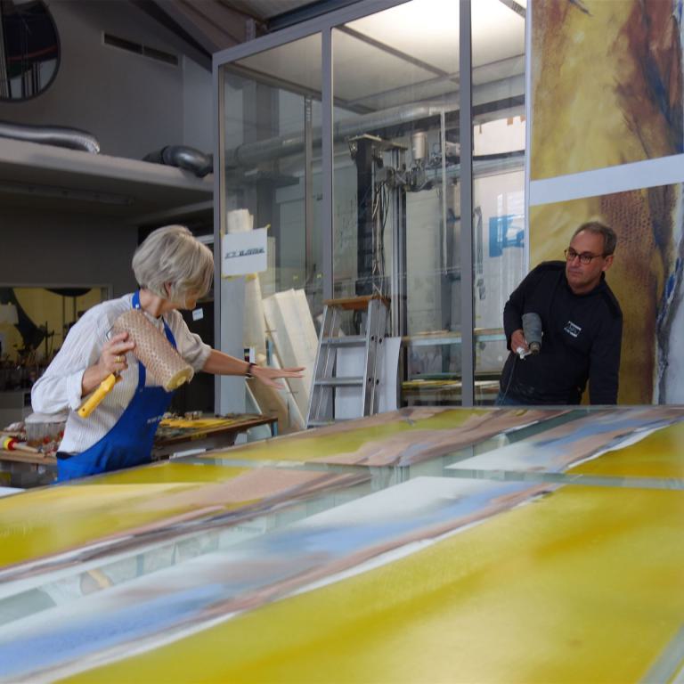 Das Spektrum der Projekte im profanen und sakralen Bereich schließt z. B. Kliniken, Schulen, Bädern, Abschiedskapellen, Räume der Stille und komplette Kirchenneugestaltungen ein. Je nach Auftrag umfasst es die Gestaltung von Fenstern, die Einbeziehung der Wand-und Bodenflächen, oder die Neuschaffung von Objekten. Die Ausführungen erfolgen in Zusammenarbeit mit spezialisierten Fachfirmen.