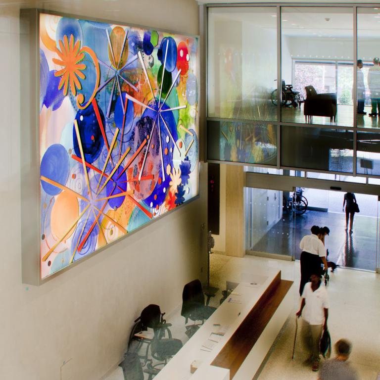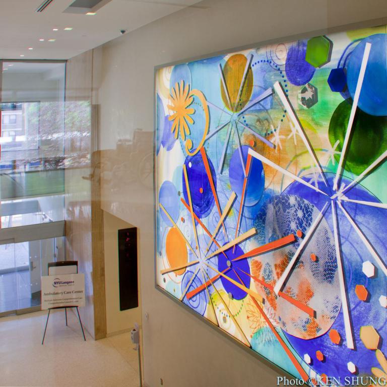 Die Werke sind einem Projekt zu verdanken, das wir im Jahr 1996 ins Leben gerufen haben. Wir forderten Künstler aus aller Welt auf, sich an einer Ausstellung zum Thema "Auf der Suche nach dem Licht der Welt" zu beteiligen. Die einzige Vorgabe für die Glasbilder war deren Format von 45 x 45 cm. Ansonsten sollten ihrer Kreativität keine Grenzen gesetzt werden. Rund 40 Künstler sagten daraufhin ihre Teilnahme zu. Mittlerweile sind mehr als 300 Künstler/innen beteiligt.