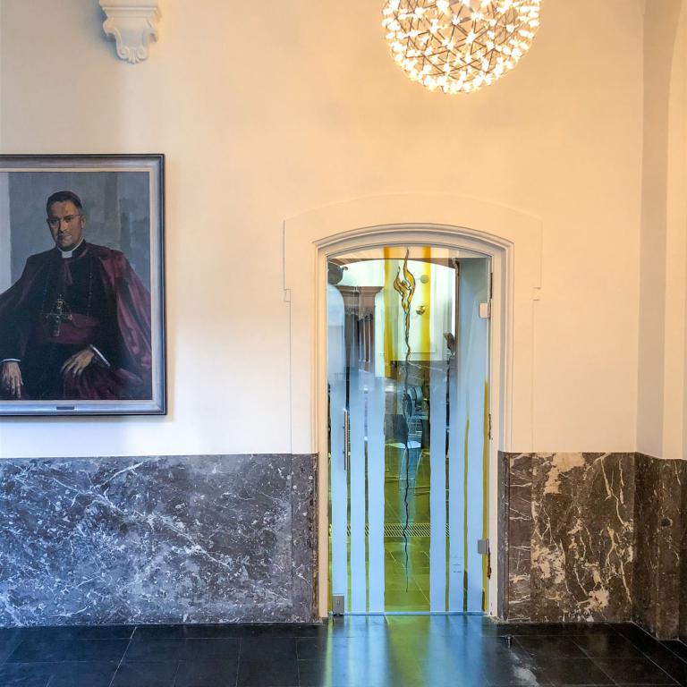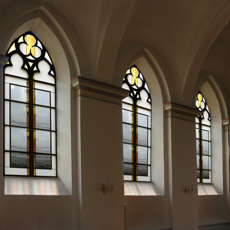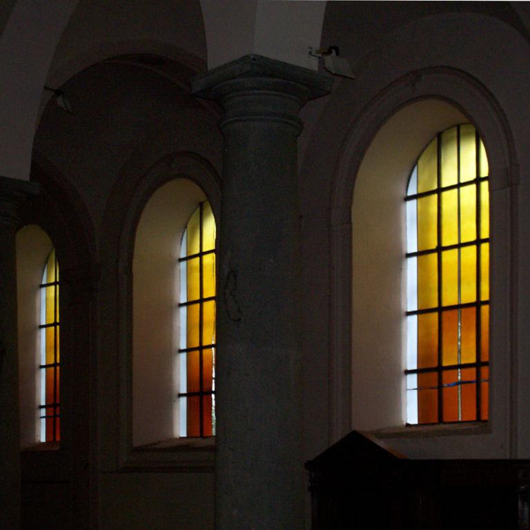 Die Werke sind einem Projekt zu verdanken, das wir im Jahr 1996 ins Leben gerufen haben. Wir forderten Künstler aus aller Welt auf, sich an einer Ausstellung zum Thema "Auf der Suche nach dem Licht der Welt" zu beteiligen. Die einzige Vorgabe für die Glasbilder war deren Format von 45 x 45 cm. Ansonsten sollten ihrer Kreativität keine Grenzen gesetzt werden. Rund 40 Künstler sagten daraufhin ihre Teilnahme zu. Mittlerweile sind mehr als 300 Künstler/innen beteiligt.