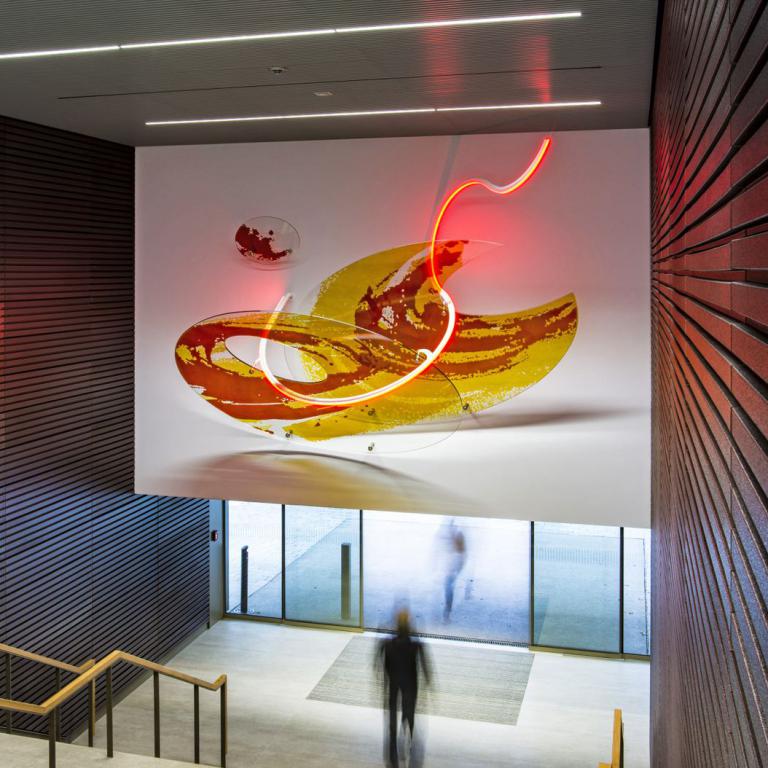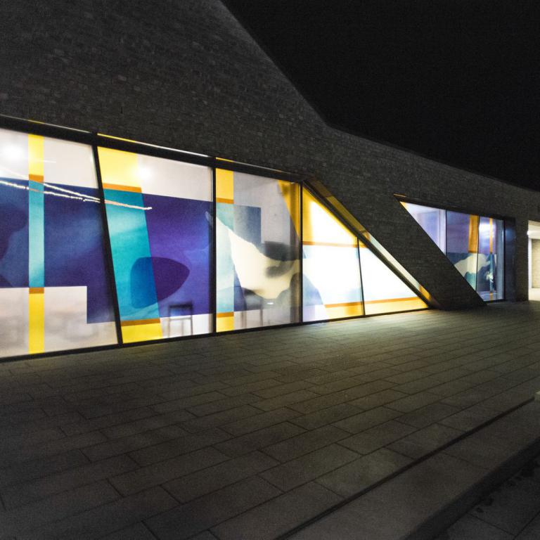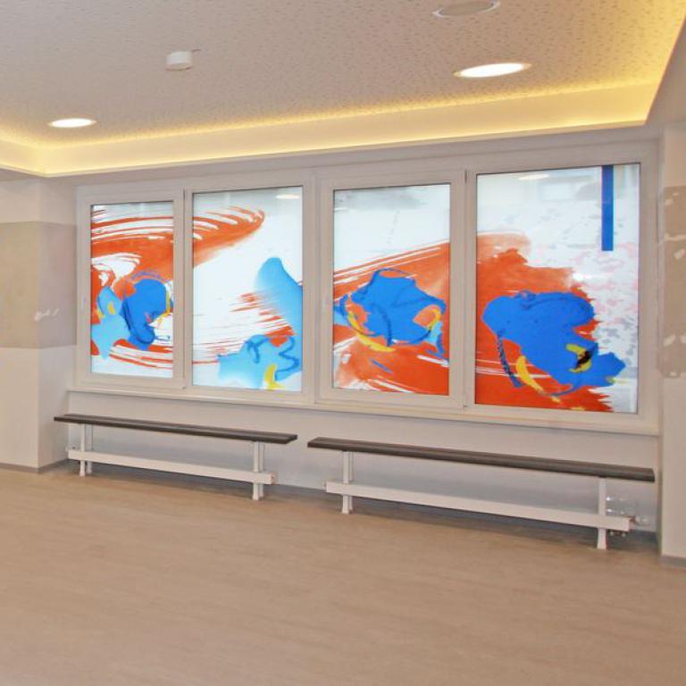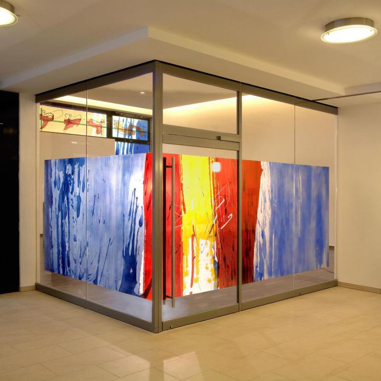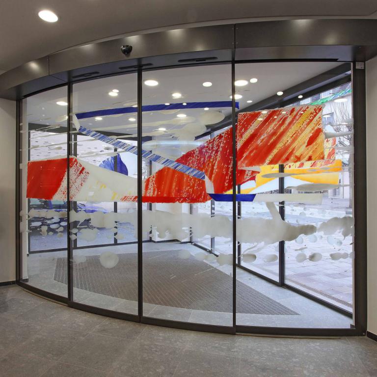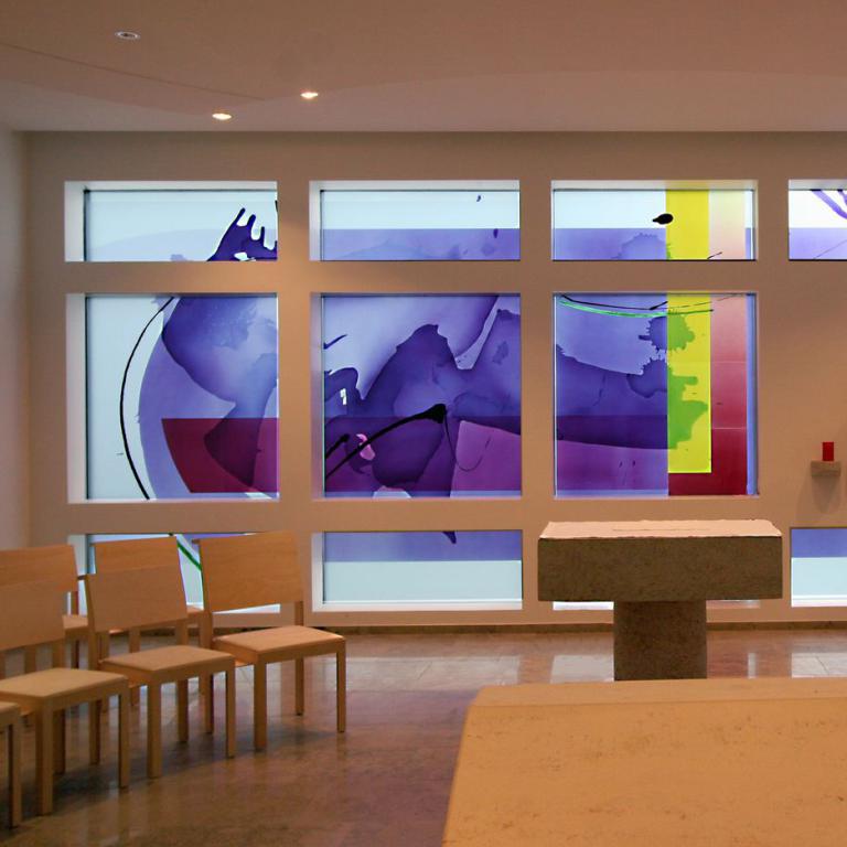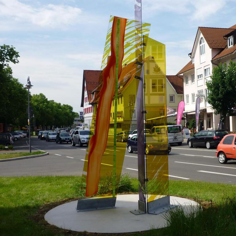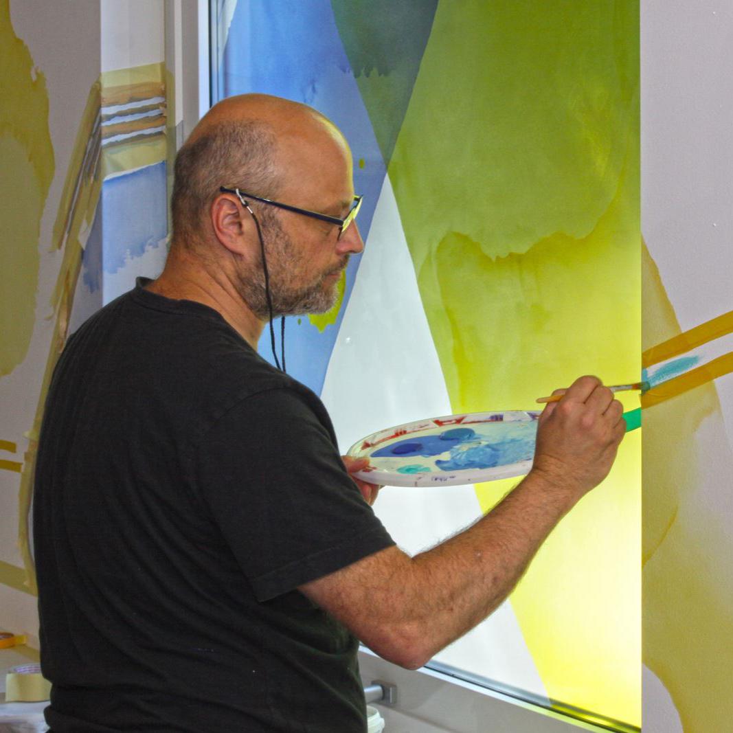 Kammerers Bildsprache ist dynamisch und harmonisch zugleich; in der geschwungenen Linie zeigt sich seine malerische Handschrift. Mit lockerer Hand setzt er Farbsignale – sei es auf dem Papier, auf der Leinwand, an der Wand oder auf dem Glas.
